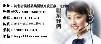 地址:河北省吳橋縣桑園鎮(zhèn)開發(fā)區(qū)燕山道西側 熱線電話:4001-588-518 郵編:061800 電話:0317-8323988 傳真:0317-8323991